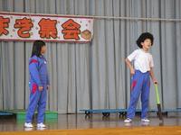校内のトップを切って3・4年生の「なわとび記録会」を開催しました。3年生は3分間、4年生は4分間を跳び続ける持久跳びの部と、二重跳びや交差跳びなどの技跳びの部にそれぞれ挑戦しました。