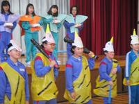 短い時間でしたが、豆まきや恵方巻の話を聞いたり、ゲームをしたりして楽しみました。また、各学年の代表による心のオニの発表では、みんながどのようなことで悩んでいるのかを知ることができました。メインの豆まきでは、5年生が豆をまくだけではなくオニにも扮してくれたので、全校生で豆をまき、心のオニを退治することができました。