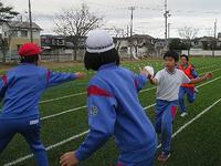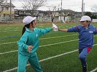 体育委員会主催の「クリスマスリレー」がありました。縦割り班をつくってバトンを三角帽子にしてリレーをやりました。兄弟対決があったり、異学年の対決があったり、抜きつ抜かれつの大激戦でした。