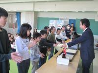 終業式の後は各種表彰を行いました。図画や書写、俳句やマラソン大会などに入賞した人に賞状を渡しました。また、全員が歯の治療が終わった学級やご飯コンテストに応募して校内審査で入賞した人も表彰されました。