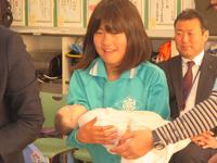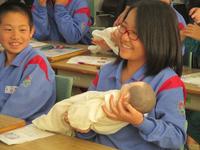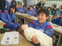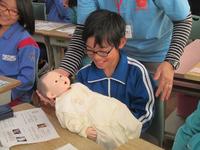また、赤ちゃんの人形を抱っこさせてもらったり、お腹の中では頭が下になっているということを教えてもらったりして、大いに盛り上がりました。短い時間でしたがとても分かりやすくて興味を持つことのできる授業でした。西方先生、本当にありがとうございました。