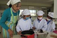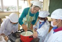7日に、福島県食育サポーターの西先生においでいただき、3年生がとうふ作りを体験しました。3年生の国語の教科書には「すがたをかえる大豆」というお話があります。今回は、実際に大豆からとうふへと姿を変えてみました。調理の過程で形や香りが変化し、おからや豆乳、そしてとうふへと変化していくのを実際に見ることができ、たくさんの驚きや発見があったようです。最後にはおいしいとうふができあがりました。