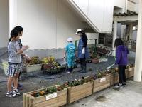 2019年11月14日 13時21分美化園芸委員会の子どもたちと有志の子どもたちが協力してパンジーとビオラの苗を植えました。校舎と体育館の間の渡り廊下の両脇をプランターに植えられた花が彩ります。冬の間も水を忘れずにあげて、満開の春を楽しみにしたいです。