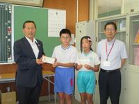 本日はその贈呈式を本校校長室で行いました。震災から8年半が過ぎてもこのように子ども達を応援してくださる方々がいることに深い感謝の気持ちが湧いてきます。代表の子どもからも、「ありがとうございます。大切に使わせていただきます。」という言葉がありました。