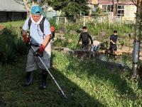 24日(土)の早朝6時30分から、15名の保護者の皆様と、東京電力の方々にも協力していただき除草しました。1時間の作業を通して、校庭周りやビオトープを綺麗にしました。中には蚊や毒虫ににさされながら作業していた方もいたのですが、子ども達の笑顔を考えながら夢中に作業していた結果だそうです。