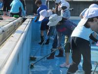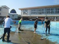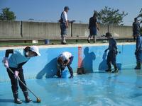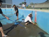 1日(土)の朝7時から、PTA奉仕作業を行いました。今回は17名の保護者の皆様に来ていただき、プール清掃を行いました。約一年分の汚れがたまったプールを手分けしながら綺麗にしていきました。2年前の久しぶりのプール清掃に比べると沈殿物なども少なく、作業時間も短くなりましたが、まだまだ保護者の皆様の協力なくしては大変な作業です。今回は東京電力の方々にも協力していただき、大変助かりました。子ども達も夏のプール学習はとても楽しみにしています。ご協力感謝いたします。