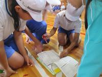 シャトルランにチャレンジしました。みんな自分の限界に挑戦していたようです。今年の最高は6年生の男子が出した80回でした。本人は昨年は41回ということで倍増したことをとても喜んでいました。また、高学年が低学年の回数を数えてあげるという優しい姿も見られました。