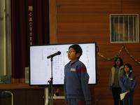 昼休みに「門出の言葉」の練習が行われました。各学年から選ばれた子ども達が、体育館で自分のセリフを大声で言いながら合わせてみました。初めは緊張のためか、声が小さかったりつまずいたりした子もいましたが、二度目はバッチリ合わせることができていました。