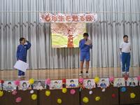 6年生を送る会が、「みんな、盛り上がっていきましょう!」という5年生の言葉から始まりました。今までの集会は6年生が中心となって企画・運営していたのですが、今回は5年生が中心となって会を作り上げてくれました。