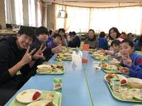 唐揚げやエビフライ、サラダやフレンチトーストといったみんなが大好きなメニューと共に、先日鹿児島県出水市のみなさんから支援していただいたもち米を用いて、おはぎも出ました。いろいろな方面に感謝の気持ちを持ちながら会食を行うことができました。