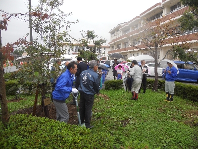 ドイツのロータリークラブから南相馬ロータリークラブへ支援があり、小高区4小学校へナラの木が贈られました。27日(木)には教育長さんや南相馬ロータリークラブの皆様などをお招きして、植樹式が行われました。本校からは3年生が代表で参加し、しっかりと土をかぶせました。「花を育てるには1年、木を育てるのは10年、」これからドンドン大きくなって秋にはドングリがたくさん取れることでしょう。生活科などでたくさん活用していきたいと思います。