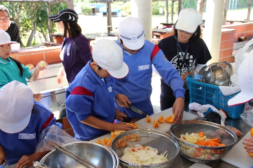 6年生は5年生の時にスキー合宿だったため、野外炊飯やフィールドアスレチックなどを体験することができませんでした。そこで今回の遠足では、いわき海浜自然の家で野外炊飯を体験しました。
