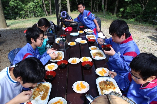 今回は5年生も一緒に行ったのですが、5年生は一学期に宿泊学習に行って会津で野外炊飯を行ったので、5年生が6年生の先生役として張り切る姿も見られました。頑張って作ったカレーライスは、どの班も最高の出来で作った本人たちが驚いていました。宿泊することはできなかったけど、よい思い出になりました。また、広野町の二ツ沼総合公園に立ち寄って楽しく遊んできました。高学年になってもトランポリンなどで元気いっぱいに遊ぶことは楽しいようでした。