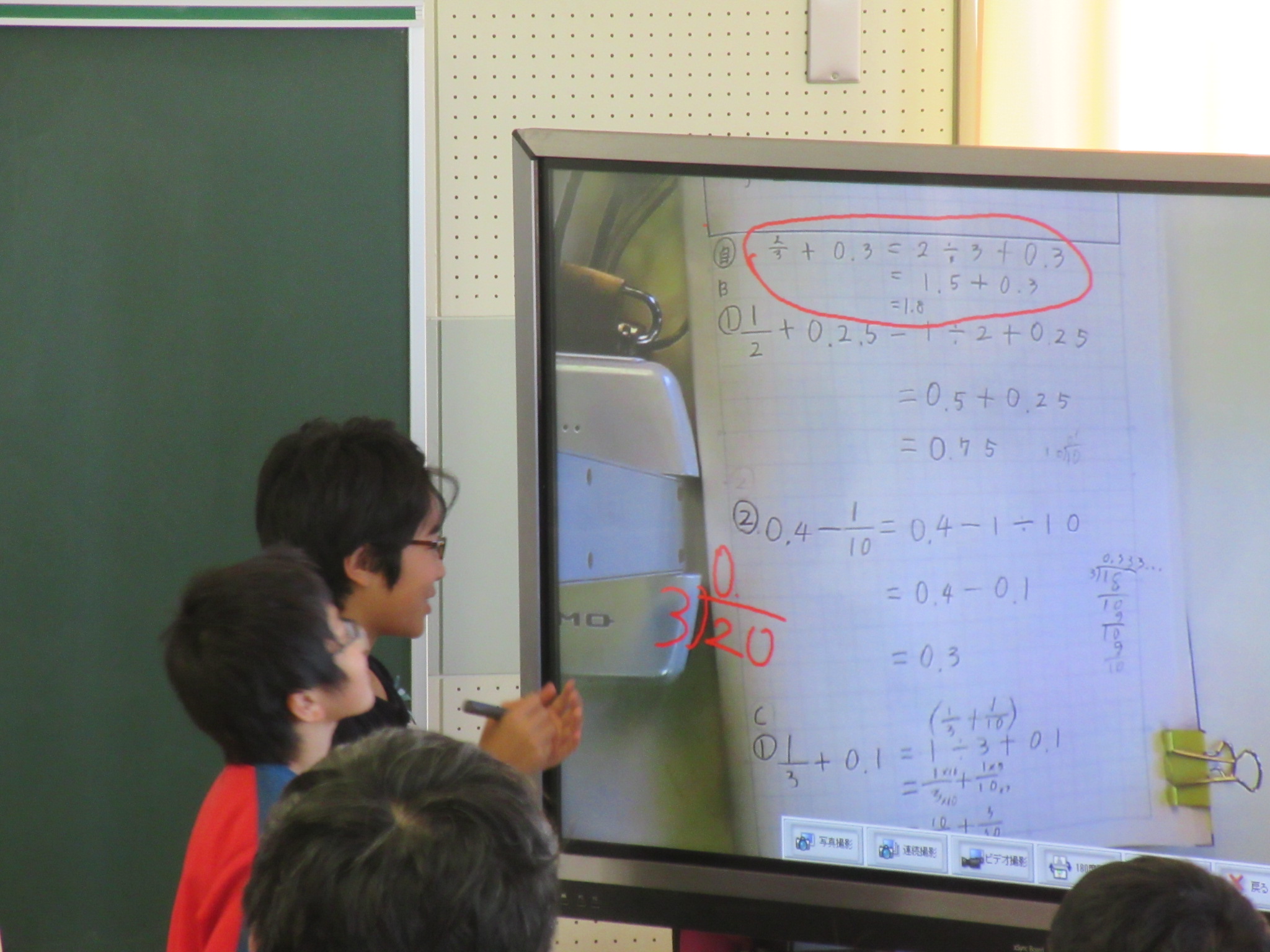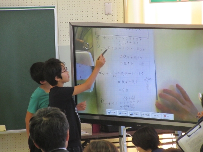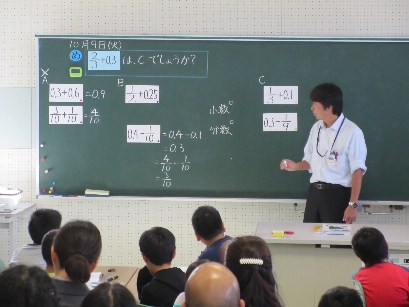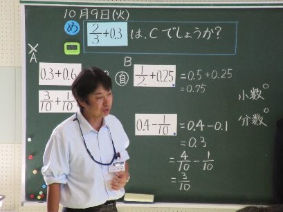 午前中は4年生の学級で県の義務教育課の先生が算数の授業を行いました。午後は本校のコアティーチャーが5年生で「分数のたし算、ひき算」の授業を公開しました。どちらの授業もこれからの算数科教育を進めていくうえで多くの示唆を与えてくださり、参加した先生方に刺激をたくさん与えてくれました。1日の研修を通してすぐに算数の授業をやってみたいという気持ちを持つことができました。もちろん素晴らしい授業を作ったのは先生方だけではなく、本校の子ども達です。今後も楽しい授業を通して学力向上を目指していきたいです。