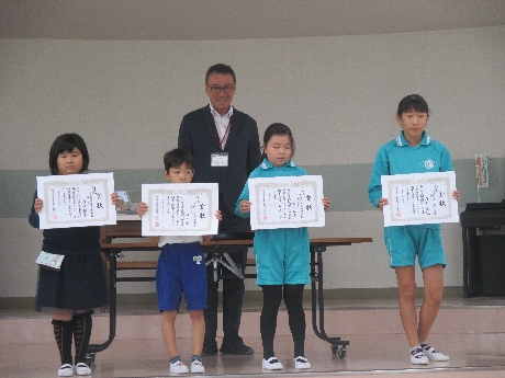 今回の全校集会では、税の書写コンクールと感想文コンクールで多くの児童が表彰を受けました。特に1年生は毛筆が始まっていないのに挑戦した結果です。レッツトライ、レッツチャレンジを実践していて素晴らしいことです。