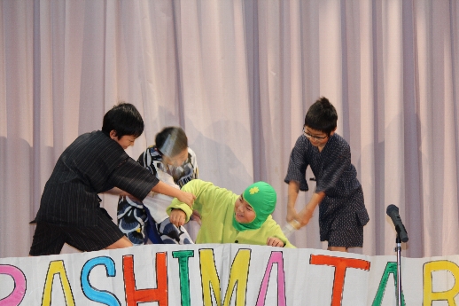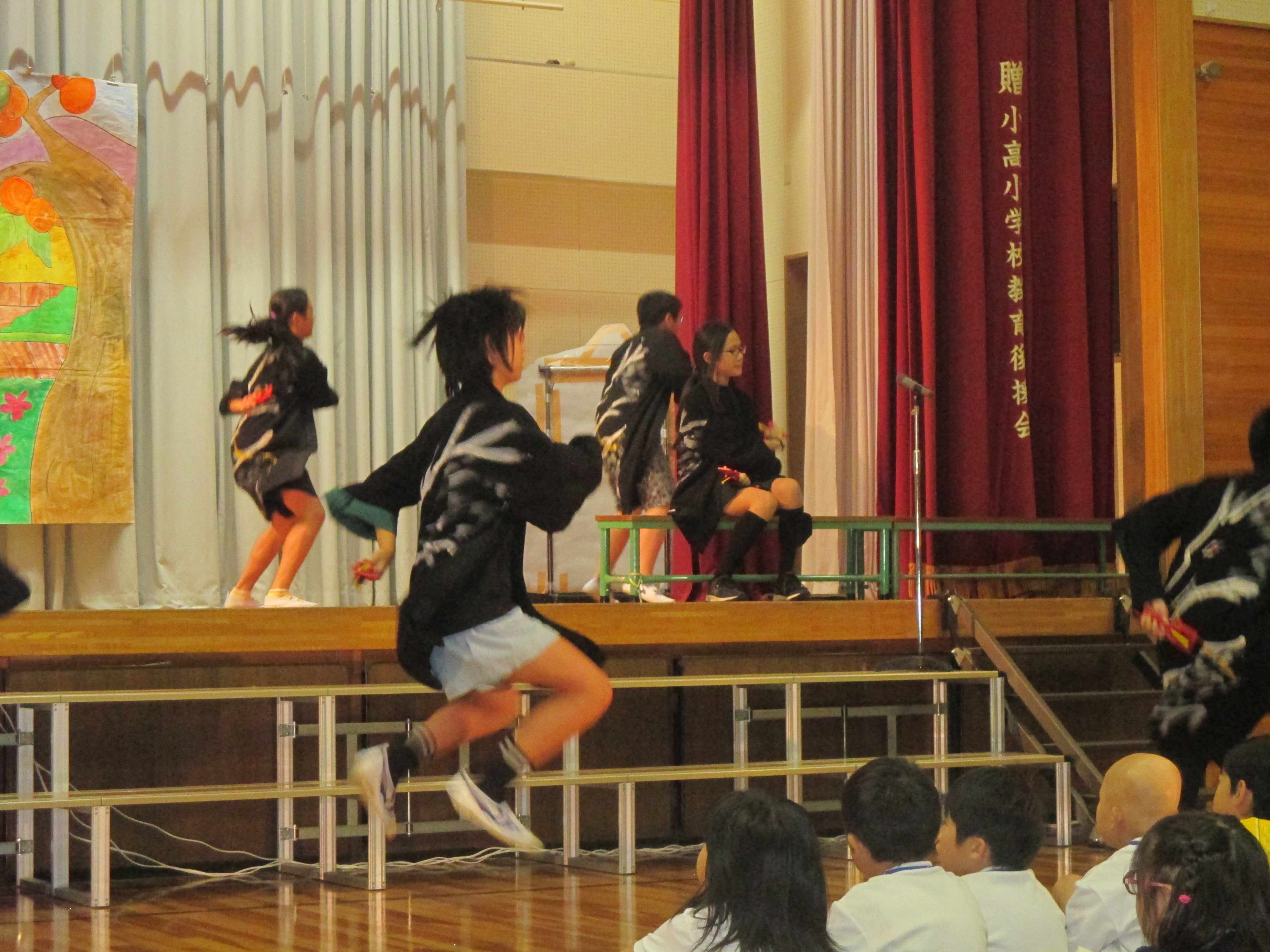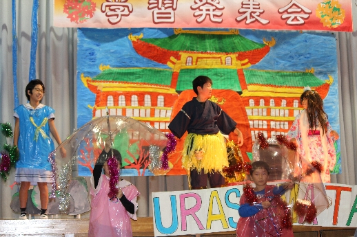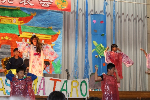 5年生は英語劇に挑戦しました。誰もが知っている浦島太郎をURASIMA TAROとして演じました。日本の物語を英語で演じると今までとは違った感覚で楽しむことができました。竜宮城での踊りも現代的なダンスで表現しました。全員が英語をスラスラと話していて小高の子ども達の外国語のスキルの高さに驚かされたことでしょう。
