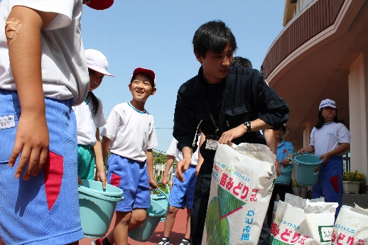 1・2年生は、JAの職員の方から説明を受けた後に、それぞれ分担しながら野菜の苗を植えました。自分で野菜を作ると生活科の学習になるだけではなく、苦手な野菜を食べられるようになるといった食育に対する良い効果も期待できます。