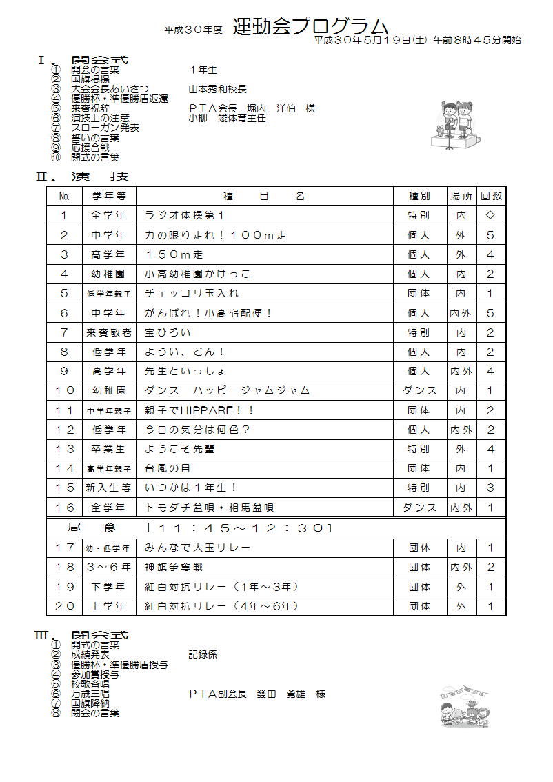 今年度の運動会プログラムが決定しました。当日はたくさんの保護者の皆様のご来場をお待ちしております。