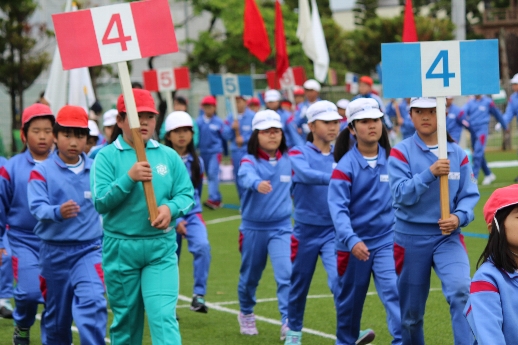 朝は土砂降りの雨でしたが、登校時間ころには雨も上がり予定通り運動会が開催されました。人工芝の校庭は水たまりもなく、ベストなコンディションで運動会を行うことができました。