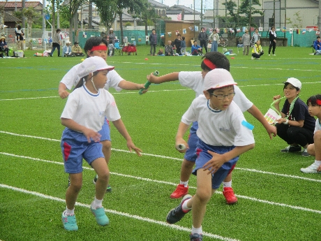 午後の全校リレーで会場全体の熱気も最高潮に達しました。紅組も、白組も全力で競い合った結果、今年は白組の優勝に終わりました。喜ぶ白組の子ども達、悔しがる紅組の子ども達、全員が同じゴールを目指して頑張った結果でした。これからも一つの目標に向かって頑張っていける子ども達を育てていきたいと思います。