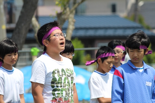 開会式の「開会の言葉」「選手宣誓」では、大きな声で代表の大役を立派にこなすことができました。ふだんはひょうきんな一面を見せる男子ですが、ここ一番ではカッコいい姿を見せてくれました。