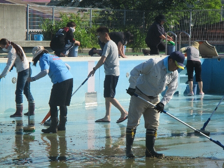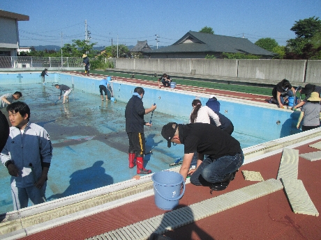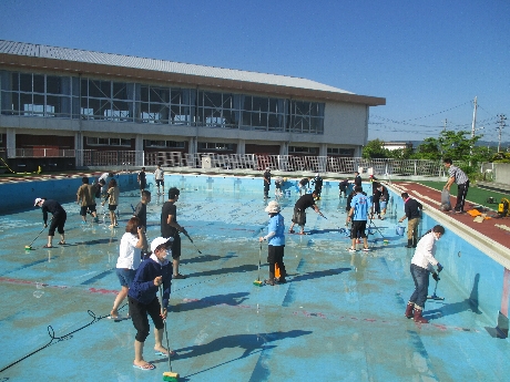 2日、土曜日の早朝からPTAの皆様にはプール清掃お世話になりました。昨年度のように6年ぶりのプール清掃ではなかったためにスムーズに清掃を進めることができました。保護者の皆様のご協力のおかげです。当日は、プールの汚れを落としていただいたり、トイレや更衣室をきれいにしていただいたり、側溝の蓋までもていねいに磨いてくださったり、隅々まで美しくしてくださって感謝しております。まだ水は溜まっていませんが、明日のプール開きを過ぎればいつでも水泳学習を行うことができます。