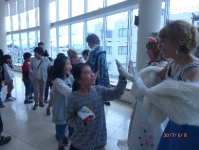 2017年6月8日 16時09分 1~3年生は鑑賞教室で「角~いじめっ子姫の物語」を見てきました。この物語は,自分勝手だったお姫様が, ある出来事がきっかけで,親もとを離れ、様々な経験を通したなかで 友情や平和、相手を思いやる気持ちを学んでいくという内容でした。多くの子ども達にとって,舞台で行われる演劇を見る機会はなかなか無いので,貴重な体験となりました。
