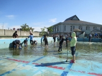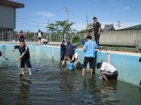 さて,3日の土曜日にはPTAの皆様にご協力いただき,プール清掃を行いました。およそ30名強の保護者の皆様に朝早くから集まっていただきました。ブラシでこすってもなかなか落ちない汚れに苦戦しましたが,皆さんの協力で綺麗なプールに戻りました。保護者の皆様には朝早くからの重労働,大変ありがとうございました。あとは水を張って子ども達の歓声を待つばかりとなりました。20日のプール開きまで待ちきれません!