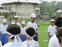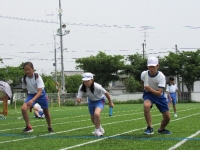 2017年5月31日 12時05分 来週の陸上大会に出場する6年生に対して壮行会を開催しました。出場種目ごとに選手を紹介したあとに5年生を応援団としたエールを送りました。種目ごとに心を込めてみんな大声で6年生の健闘を願っていました。アトラクションとして5年生と6年生のリレー対決も行いました。どちらも全力で走ったので素晴らしいレースとなりました。来週の本番では入賞はもちろんですが,自己新記録を更新できるように頑張ってほしいです。