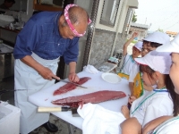 2017年5月30日 16時38分 2年生は生活科の学習で,まち探検に出かけました。今回訪れた場所は「エンガワ商店」「谷地魚屋」「ハリオガラス」の3カ所です。「エンガワ商店」では小高区の人々が買い物をしている様子を見学できました。いろいろなものが売っていて便利なお店だと感じました。「谷地魚屋」ではマグロの解体ショーを見せてもらいました。試食もさせていただき,その味に感激していました。「ハリオガラス」ではガラスを使ったアクセサリーを作る様子を見せてもらいました。身近なところで宝石のようなアクセサリーを作っていることを知り,女の子の目もキラキラ輝いていました。