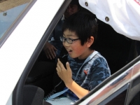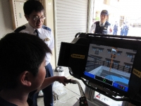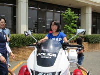 外に出てからはパトカーや白バイの体験をさせてもらいました。サイレンを鳴らしたり,マイクでお話したり,白バイにまたがったりしました。また,自転車シミュレーターを使って安全な自転車の乗り方も教えてもらいました。