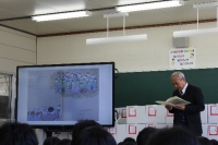 歩行訓練の後は,小高駐在所の警察の方から交通ルールについてお話をいただきました。交通標識のクイズを交えながら楽しく学習することができました。子ども達が戻ってきて賑やかになった小高区ですが,交通事故は0のままでいきたいものです。