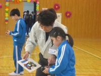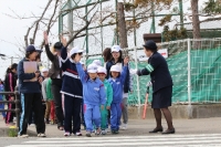 2017年4月10日 12時44分 2校時目には交通教室が行われました。学校のそばに住んでいる子も増えたため,学校の周りの歩き方の練習をすることはとても大切なこととなります。今回は幼稚園児も一緒に,実際に路上で歩行訓練を行いました。特に力を入れた部分は横断歩道の渡り方です。「右」「左」「右」を自分の目で確かめて手を挙げて渡る練習を何度も繰り返しました。