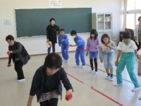 3・4年生がそれぞれチームを作ってハンドボールのトーナメント戦を行いました。女子がゴールを決めると得点が2倍になる等の工夫されたルールのおかげで,みんなが楽しむことができる大会となっています。