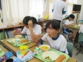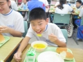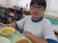 秋野菜の代表でもあるカボチャは甘くて栄養もありみんな大好きな食材です。今回のようなシチューにもぴったりですね。中にはカボチャが苦手で「少しだけで良いです・・・」などと言っていた子もいましたが,一口食べたら「これ,美味しいよっ」などと言っている姿も見られました。