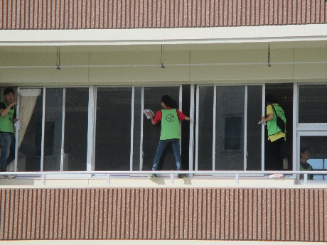 2018年9月14日 16時00分14日(金)に立正大学のボランティアの方々が、窓そうじに来てくださいました。学生のみなさんは、大学のボランティアセンターの募集に応じて自主的に来てくださりました。