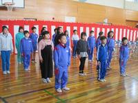 昼休みに「門出の言葉」の練習が行われました。各学年から選ばれた子ども達が、体育館で自分のセリフを大声で言いながら合わせてみました。初めは緊張のためか、声が小さかったりつまずいたりした子もいましたが、二度目はバッチリ合わせることができていました。