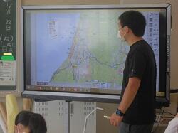 「庄内平野はどんなところなのかを調べること」をテーマに学習していました。子どもたちは、地形と気候の特色を表す資料を基に、米づくりが盛んな地域についてまとめていました。