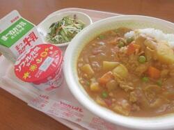 今日の献立は「ポークカレーライス(麦・乳)」「牛乳」「かいそうサラダ」「ヨーグルト(乳)」でした。