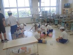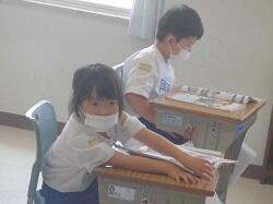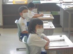 「1学期を振り返ること」をテーマに活動していました。子どもたちは、内容を振り返るとともに、安全な行動についても確認していました。