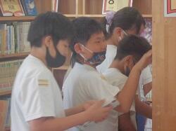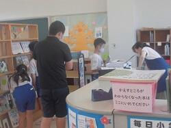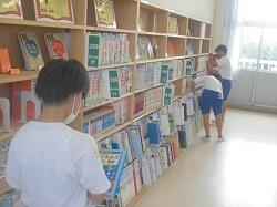 「読書の発展活動として、夏休中に読んでみたい図書を選ぶこと」をテーマに活動していました。子どもたちは、数ある図書の中から2冊を選んでいました。