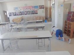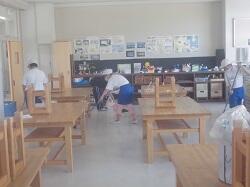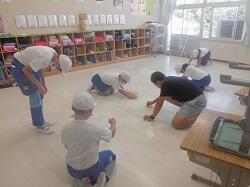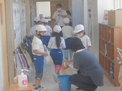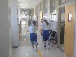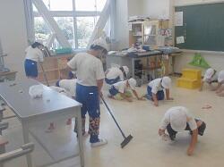 1学期終了に当たって、日常的な後片付けや縦割り班による清掃活動では、手が届きにくい教室・廊下等の汚れをきれいにする活動を行いました。特別教室については5・6年生が担当したり、各教室では役割を分担したりしながら作業を進めていました。