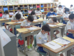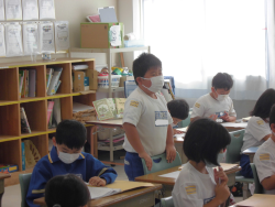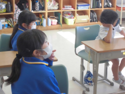 「遠足に向けた準備と座席替えをすること」をテーマに活動していました。子どもたちは、遠足の注意点等を確認することとは別に、「晴れますように…」の願いを込めて“てるてるぼうず”をつくっていました。また、新たな気持ちと環境で学習に取り組むことができるように座席替えも行っていました。
