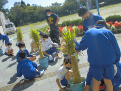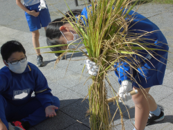 大甕小学校のひとコマ(10月18日)※「音楽指導、JA食農体験教室(バケツ稲収穫)」を含む。