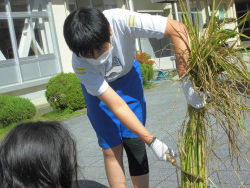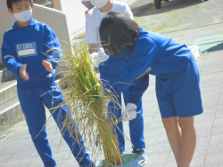 また、4校時のJA食農体験教室(バケツ稲収穫)の時間には、収穫の仕方等について学びました。