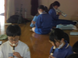 音楽科「いろいろな音や和音の響き、曲想の変化を感じ取ること」をテーマに活動していました。子どもたちは、“木星”という曲の合奏に向けて、個人やパートの練習を重ねていました。