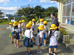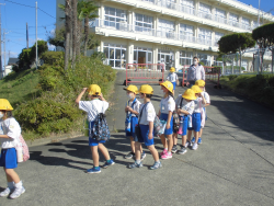 「高見公園で秋を探すこと」をテーマに活動していました。子どもたちは、春・夏の公園の様子との違いにも目を向けていました。写真は、バス出発前の様子です。