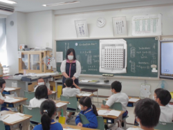 「6×2の求め方を考えること」をテーマに学習していました。子どもたちは、「6のまとまりが2つぶん」という考えを基に「答えは12」をもとめ、6のだんのかけ算についても考えていました。また、かけ算九九4のだんの復唱も行っていました。教室の入り口にはかけ算九九3のだんも掲示されています。