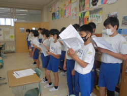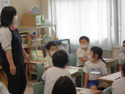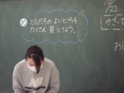 「曲のやまを感じながら歌うこと」をテーマに活動していました。子どもたちは、歌詞だけではなく、教科書の旋律(楽譜)にも目を向け、「声の大きさ」「音の高低」に気を付けながら歌っていました。