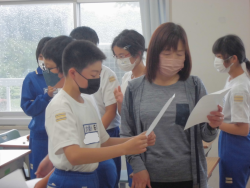 「集会に向けて、選手紹介等の確認をすること」をテーマに活動していました。子どもたちは、出場種目ごとのメンバーに分かれて、紹介の練習を行っていました。